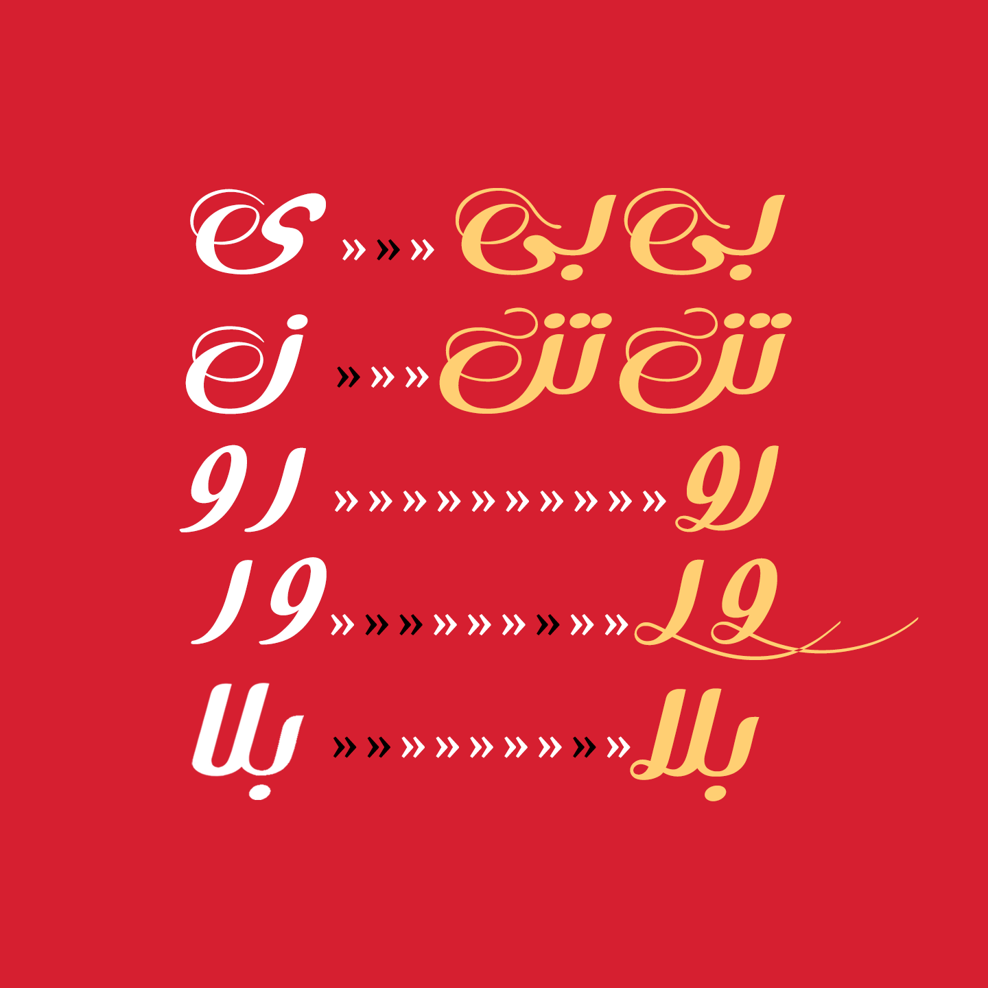 برخي حروف به منظور همنشینی بهتر و اصلاح فواصل به صورت ترکیبهای لیگاچری طراحی شدهاند که در تصویر زیر نمونهای از آنها را مشاهده میکنید.