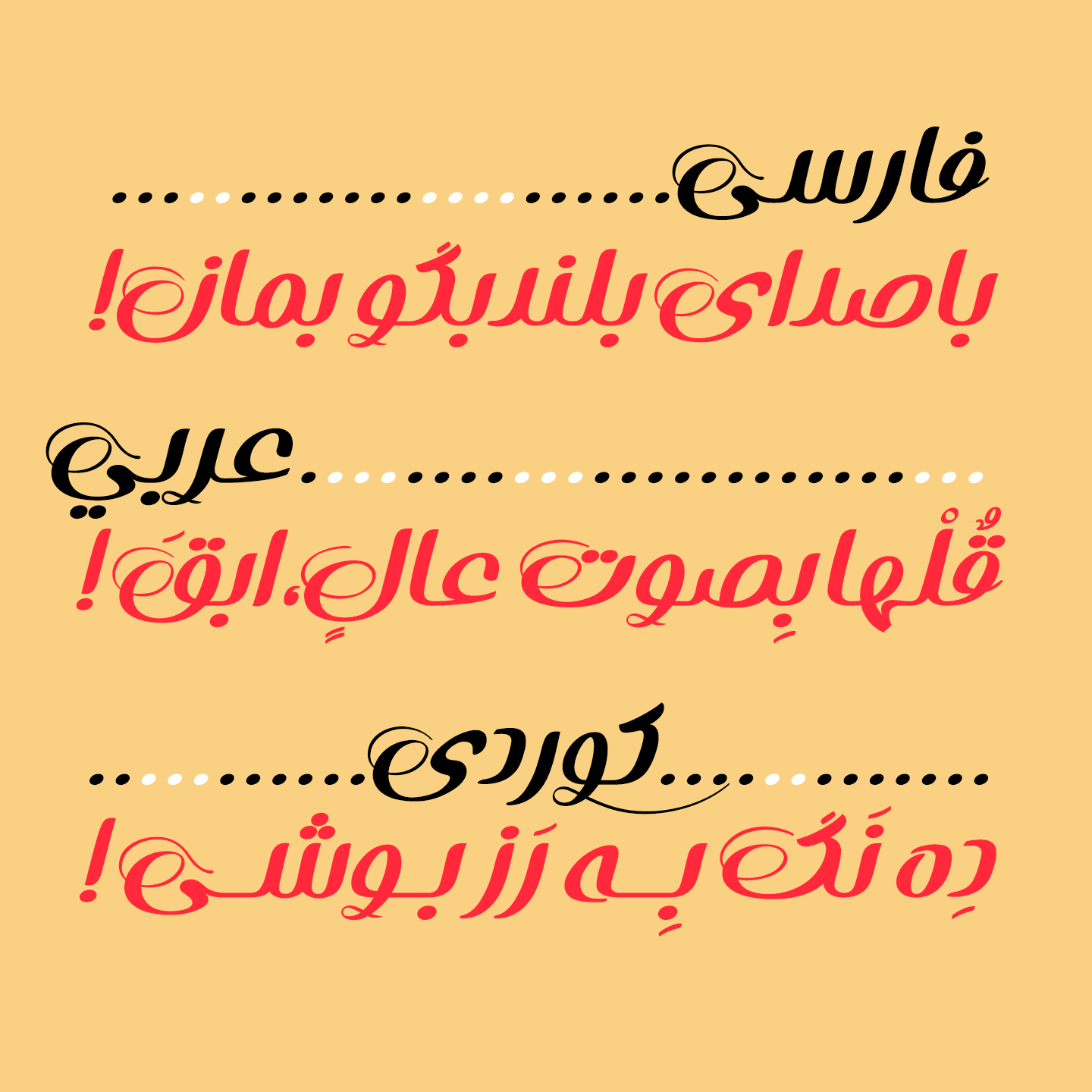 این فونت از حروف و اعداد فارسی، عربی و کوردی پشتیبانی میکند