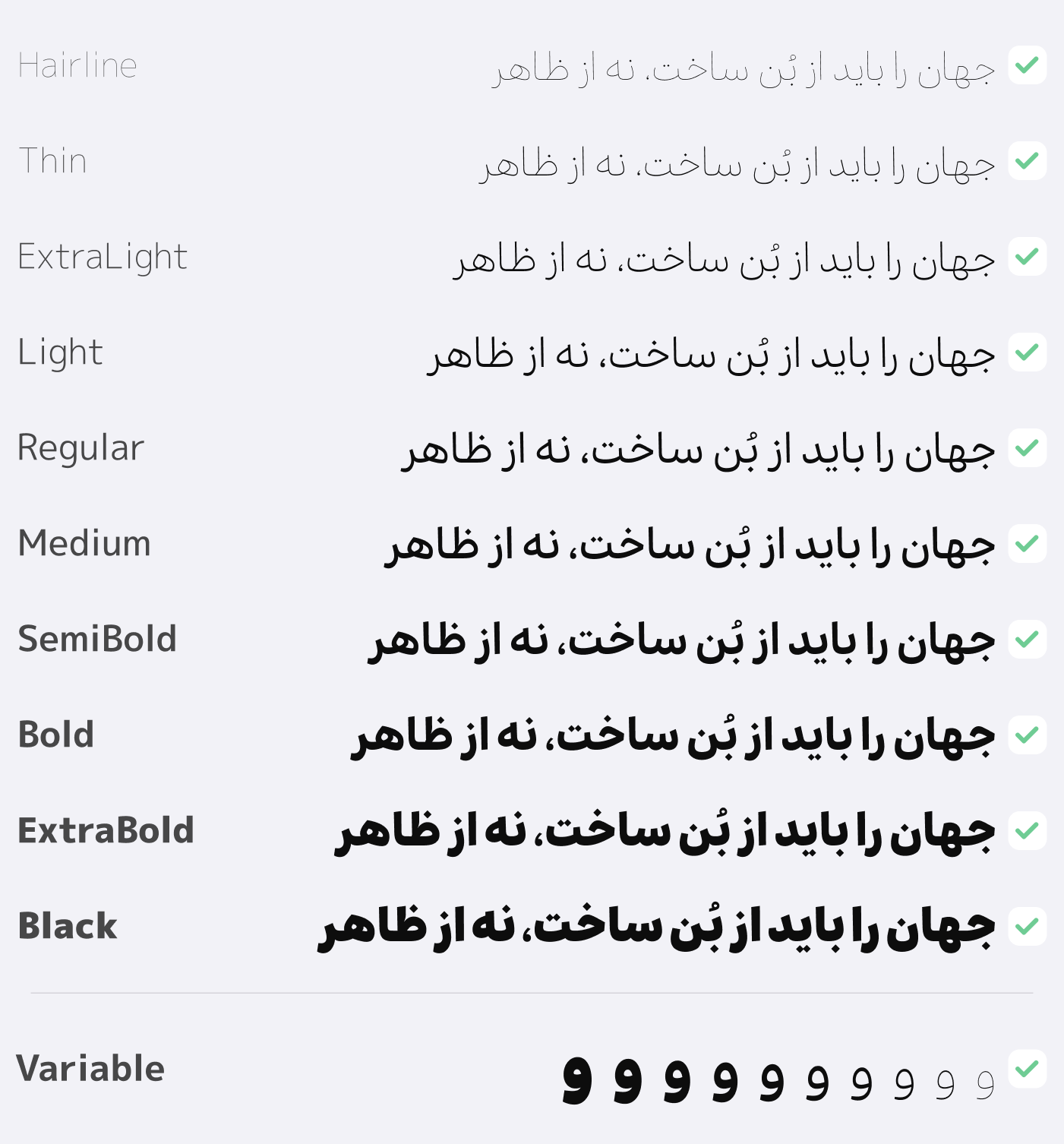 - فونتهای اصلی: با فرمت ttf در ۱۰ وزن.