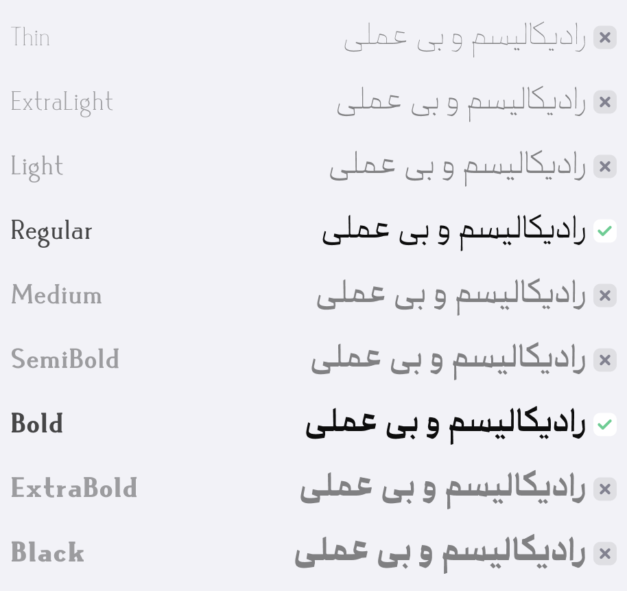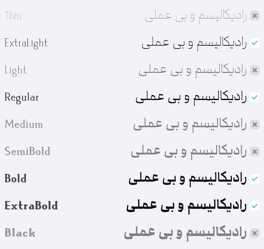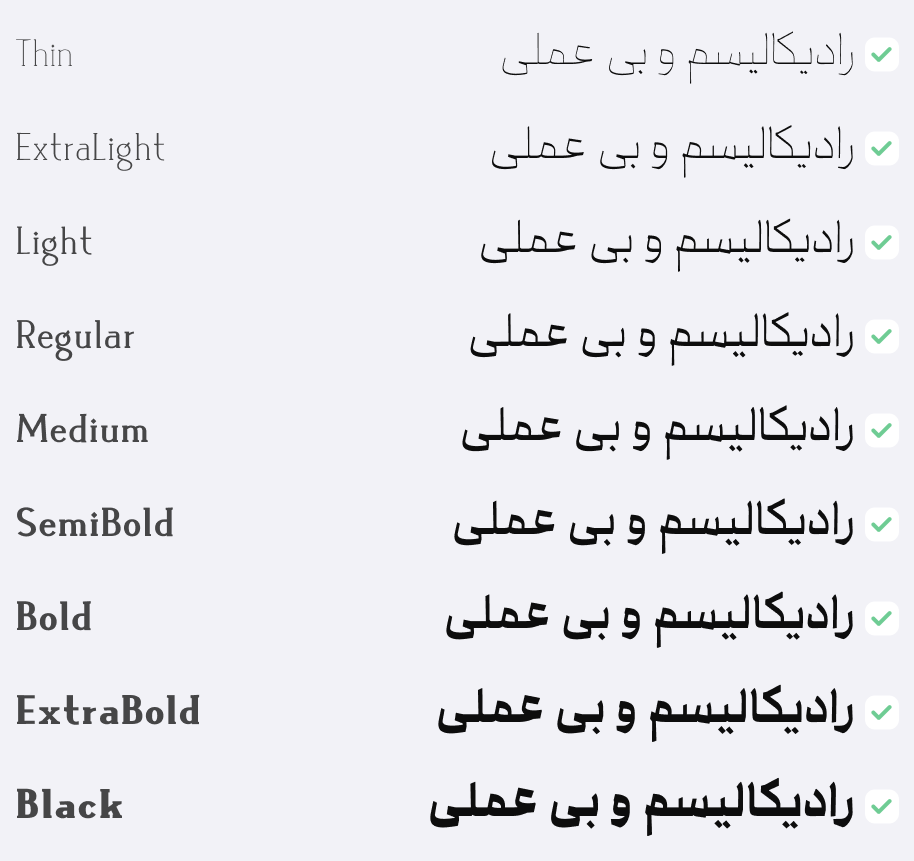 در بسته فونت رادیکال (حرفهای) موارد زیر را دریافت میکنید:
