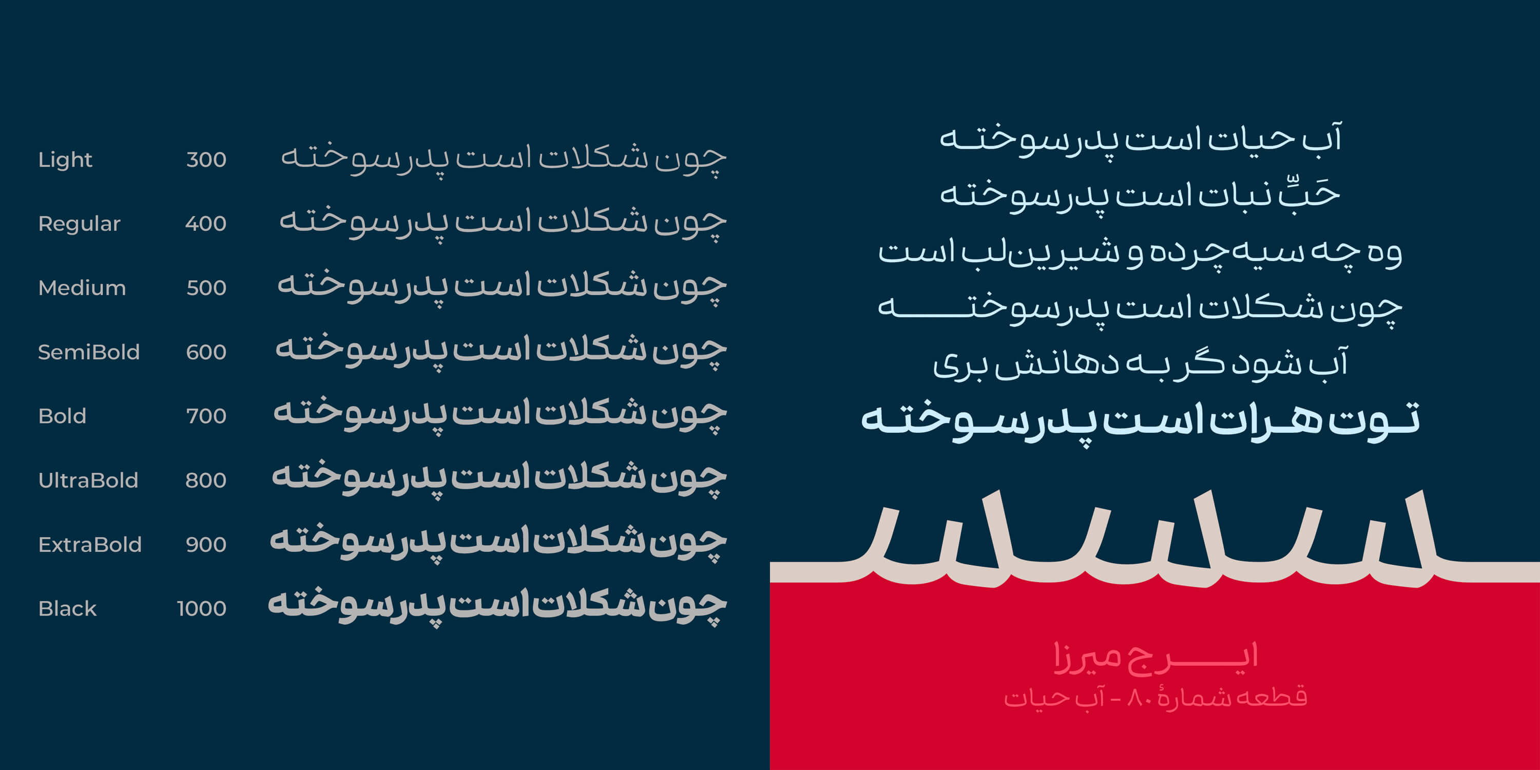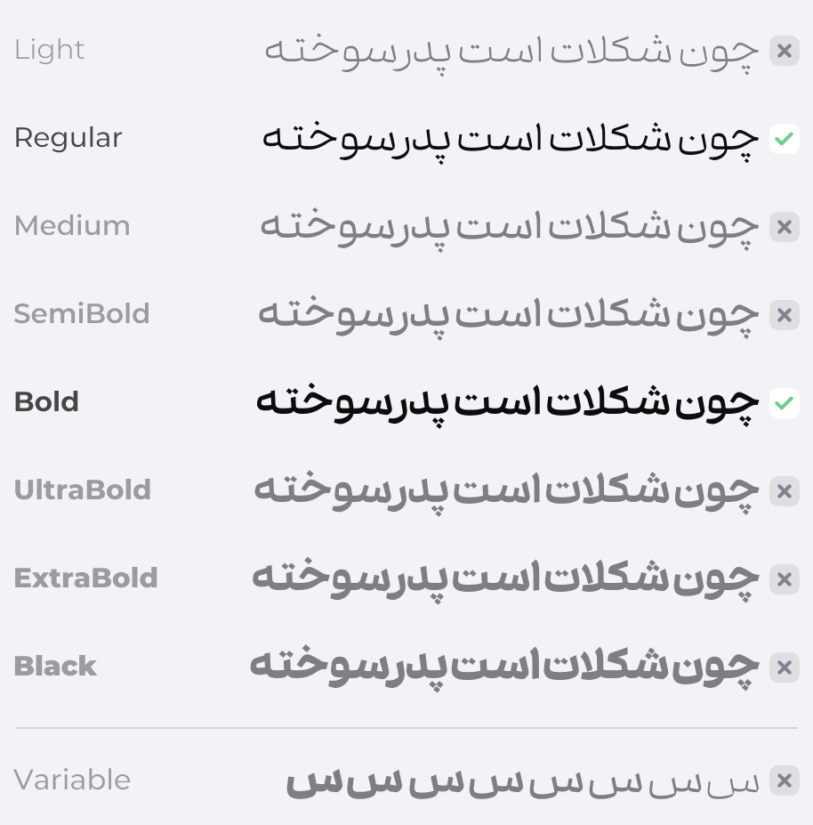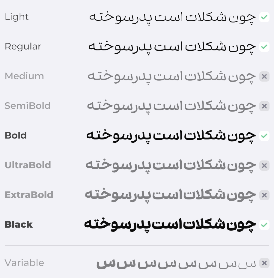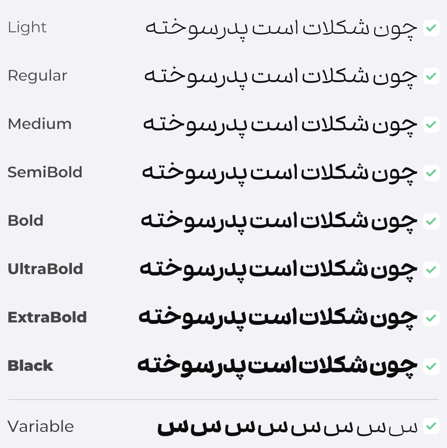- فونتهای اصلی: با فرمت ttf و otf در 8 وزن